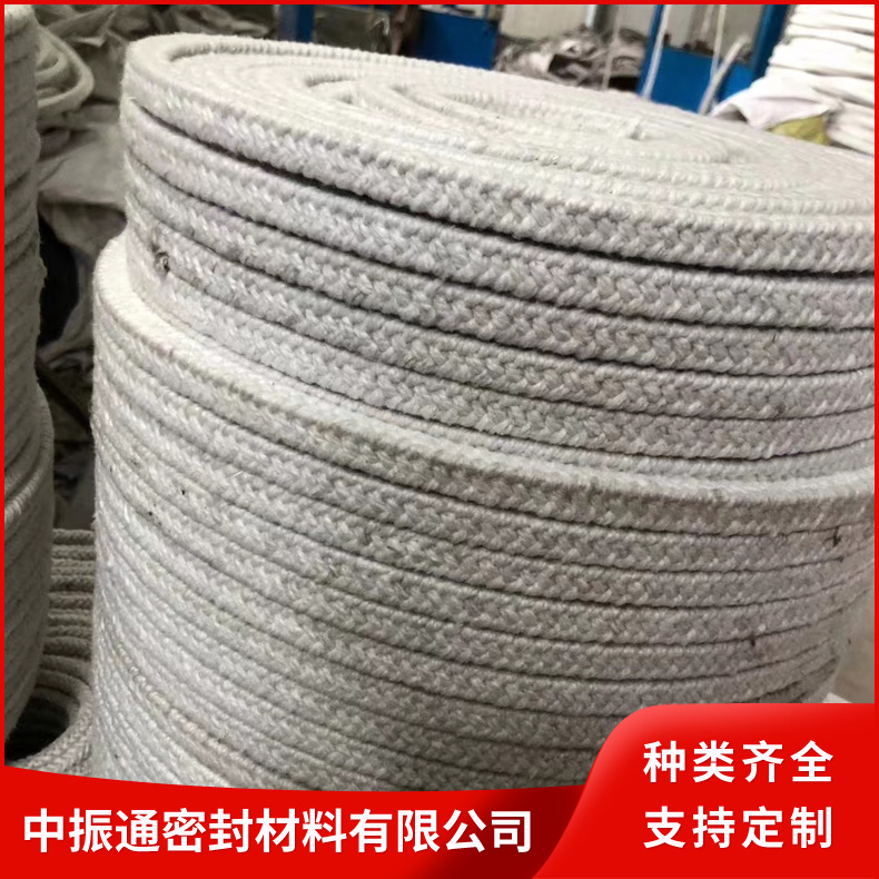 陶瓷纤维盘根由陶纤线方形编织而成,用于保温、隔热材料,是石棉绳的理想代替品。常用于各种炉子、燃烧器、换热器、烟道的门密封。也可由金属丝增强。