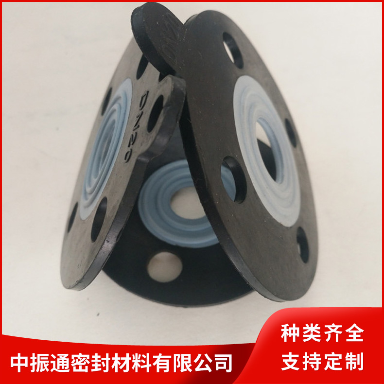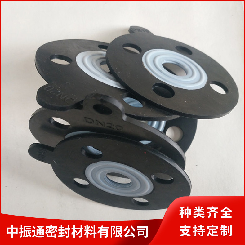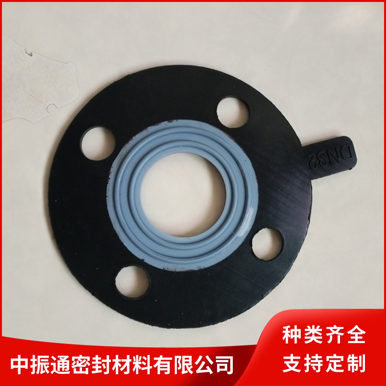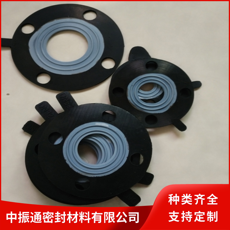 四氟乙烯夹包垫片是由石棉橡胶板或无石棉板等软垫片和聚四氟乙烯包覆薄片组合而成,V型(剖切型)四氟夹包垫片由四氟板机械车削而成,U型(折包型)四氟夹包垫片由四氟带包边后加热粘接而成。兼具优异的耐腐蚀性和良好的压缩回弹率,广泛应用于各种强酸、强碱、强氧化、氯气和不允污染介质的密封。通常适用于中、低压部位。